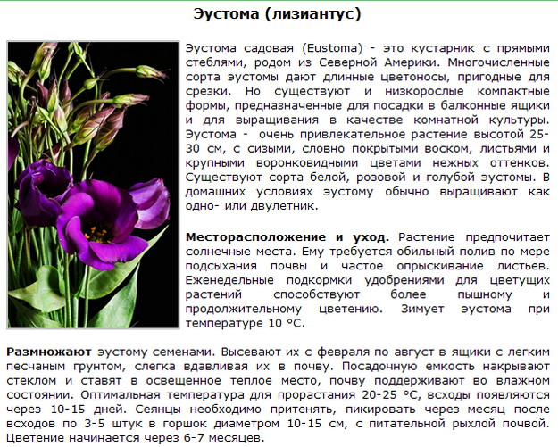 Описание эустомы