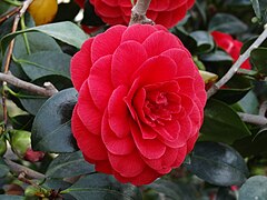 Camellia japonica является «знаменосцем»; для камелий, имеющих большие округлые листья, плотный рост и большие цветы оттенков белого, красного или розового. Эти цветы от трех до пяти дюймов в ширину. Цветки могут быть одиночными, полумахровыми или махровыми. Camellia Japonica вырастает до 25 футов в высоту, но обычно сохраняется на высоте от шести до двенадцати футов. Время цветения разных сортов варьируется с сентября по апрель.