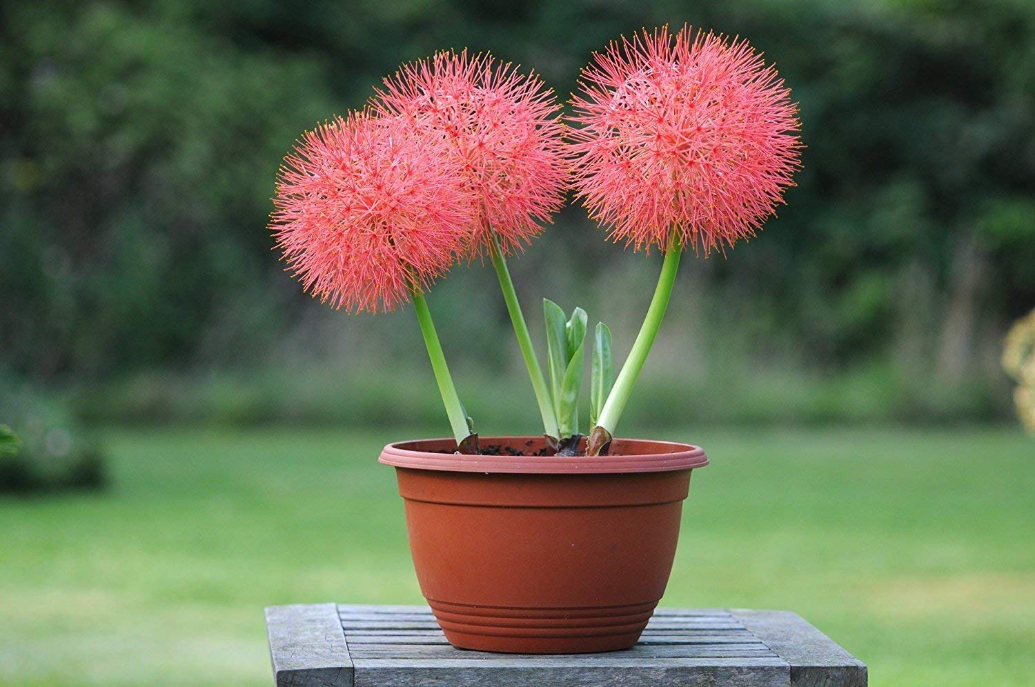 В высоту достигает 30-40 см и отличается яркими пушистыми соцветиями (на фото) бело-кремового или красного цвета. Зацветает обычно весной или летом. От одной луковицы вырастает от двух до шести поперечно-кожистых или мясистых, короткочерешчатых или сидячих листа. В домашних условиях можно содержать только гибридные сорта гементусов.