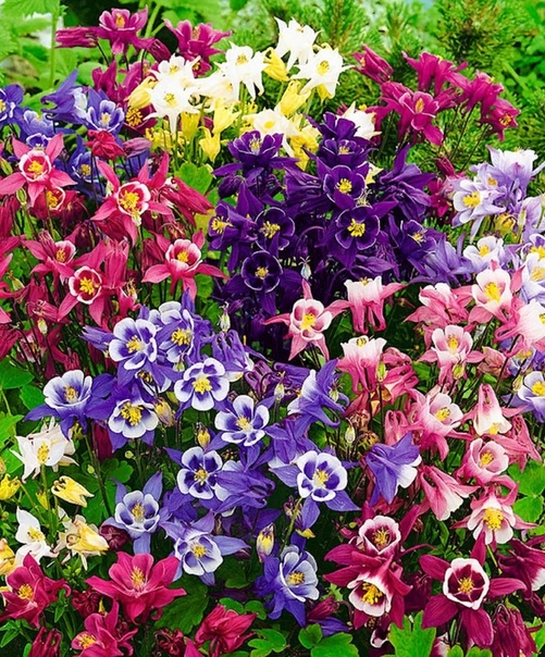 Коломбины цветут в середине весны. Коричневые разновидности включают «Black Barlow», «Chocolate», «Single Black», «Roman Bronze», «Futaba» Lantern «коричнево-оранжевого цвета и» William Guinness «, который больше имеет темно-бордовый, чем бронзовый оттенок.