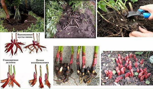 В сентябре проводят посадку пионов, расположив корневища так, чтобы почки возобновления не были заглублены более 3-5 см, и не выступали над поверхностью почвы более 2-3 см. Делёнки или молодые кусты осторожно выставляют в яме, обсыпают грунтом и поливают.