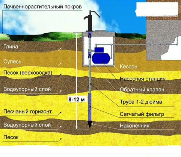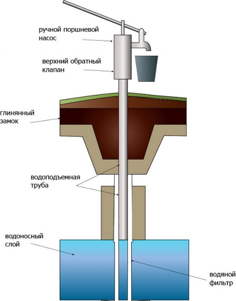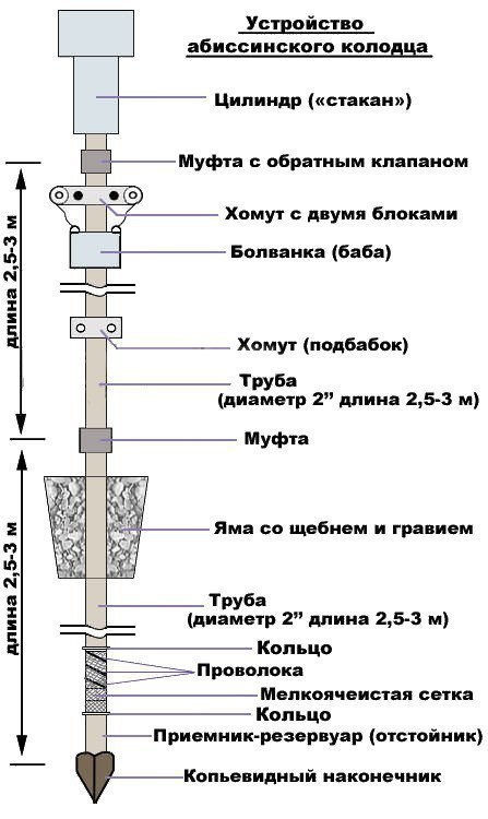 Абиссинский колодец состоит из следующих конструктивных элементов: