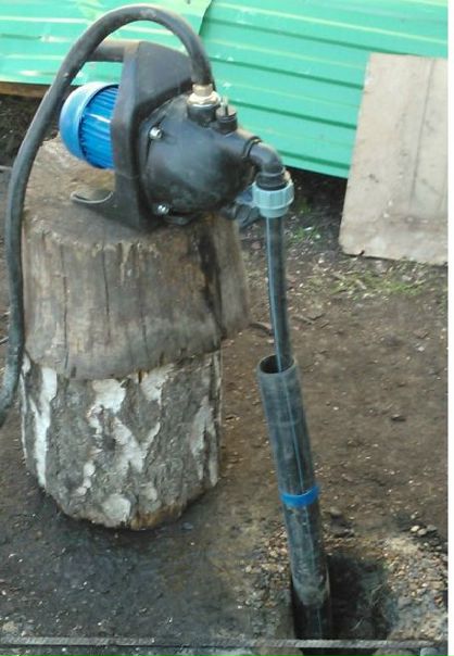 После заглубления трубы в грунт, к ней прикрепляют самовсасывающий насос, который работает по принципу вакуума. Если одна скважина не даёт достаточного количества воды, рядом с ней создают ещё одну такую же.