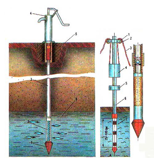 - Диаметр скважины-иглы очень мал, значит, оснастить её погружным насосом не представляется возможным.