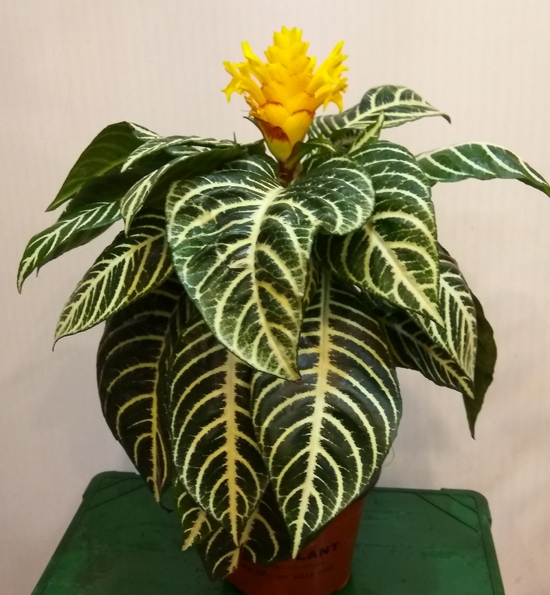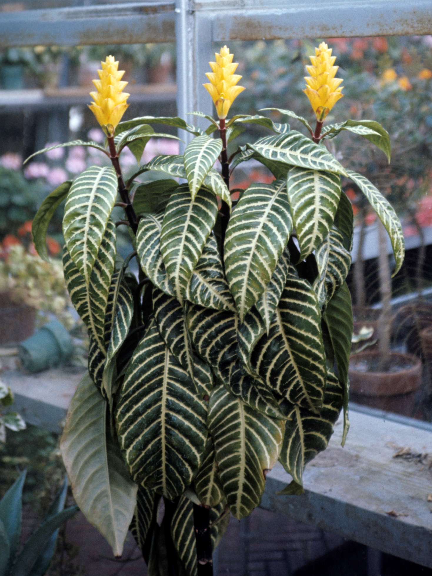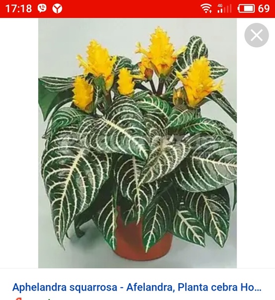 La Aphelandra squarrosa es una planta originaria del Brasil, que alcanza no más de 60 cm de altura, muy Estimada por la belleza de sus hojas de colour verdetenso y con vetas blancas bastante pronunciadas en el haz y de colour verde clo en el envés.Las flores pueden ser amarillas o de color naranja según la variedad, de forma tubular o bilabiadas con brácteas de color amarillo, muy llamativas hasta de 10 cm de largo.