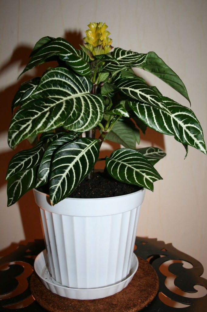 Разновидность этого сорта – афеландра дания (даника) также с белесыми узорчатыми листьями, кажущимися полупрозрачными.