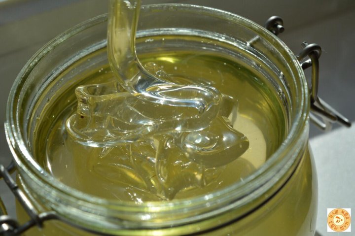 - мед алтайской акации бледно-желтого цвета, имеющий жидкую консистенцию – он будет немногим гуще воды на протяжении 2 лет, после чего начинает кристаллизироваться, приобретая мелкозернистую структуру.