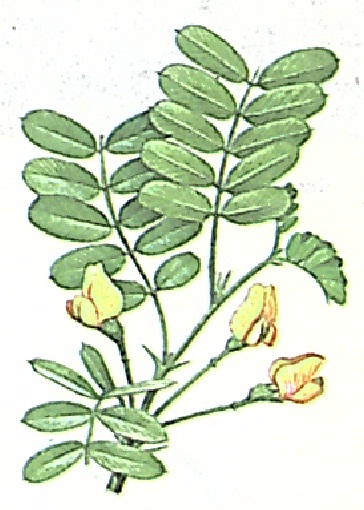 Ярко-желтые цветы, расположены в пазухах листьев, по 3-5 штук, их форма – типична для бобовых, это так называемый «мотыльковый цветок».