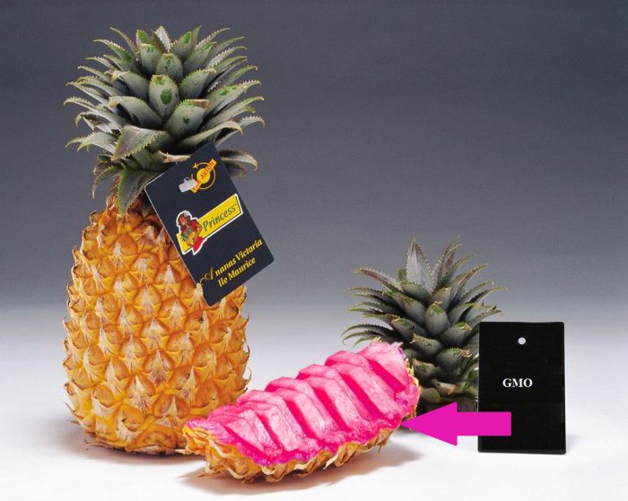 Да, они были генетически модифицированы в лаборатории, чтобы быть слаще и розовее, чем натуральные ананасы. 3 гена были изменены, чтобы изменить естественный желтый цвет от бета-каротина на розовый цвет от ликопина.