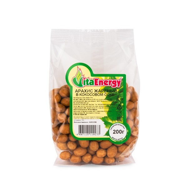 Арахис в кокосе богат такими витаминами и минералами, как: витамином B1 — 29,3 %, витамином B5 — 27,8 %, витамином B6 — 13 %, витамином B9 — 36,2 %, витамином E — 46,1 %, калием — 26,4 %, магнием — 44,1 %, фосфором — 44,5 %, железом — 12,6 %, марганцем — 104 %, селеном — 13,5 %, цинком — 27,7 %