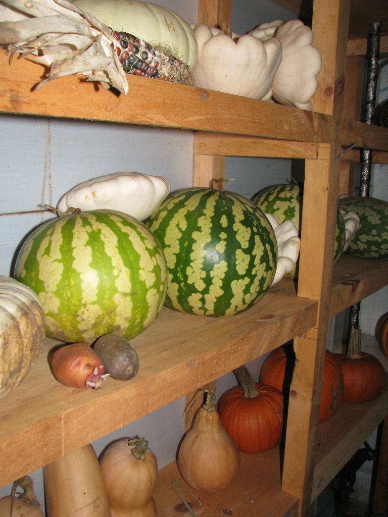 - проще всего сохранить арбуз, если есть погреб, так как оптимальная температура хранения +1-+3 градуса.