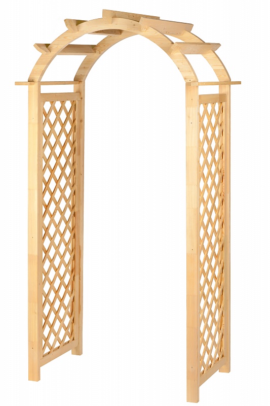 При желании можно заказать готовое изделие. Оно может иметь сводчатую, шпалерную или трельяжную форму. Для выполнения конструкции применяется древесина, пластик и металл.