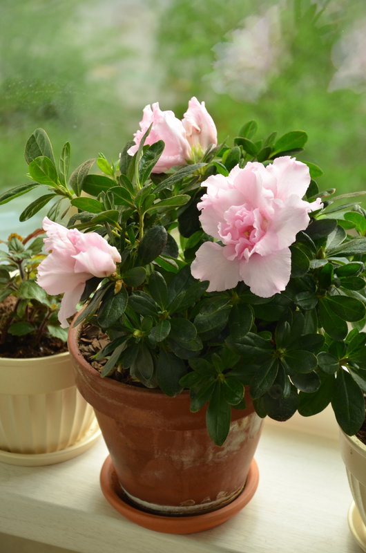 Азалию выносят на улицу весной, и заносят осенью, уже после первых заморозков. На свежем воздухе растению проще мириться с повышением температуры. Осенью, после холодного «стресса», азалия зацветает сразу после перемещения в дом, при условии, что и здесь для нее найдется прохладное место.