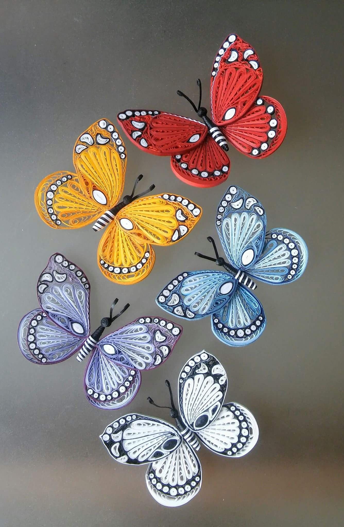 Наиболее простой и дешёвый способ изготовления мотыльков — это вырезание из бумаги. Их можно сделать любой формы и цвета. Проявив фантазию, даже новички создадут прекрасное украшение и по праву смогут гордиться им.