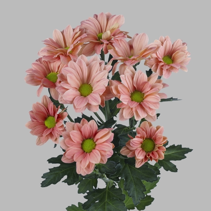 - Хризантема кустовая Бакарди розовая (Bacardi Pearl Chrysanthemum). Лепестки нежно-розовые с перламутровым отливом. При составлении букетов, включающих хризантему Бакарди Перл, флористы часто украшают соцветия блестками и стразами, что делает их еще более привлекательными.