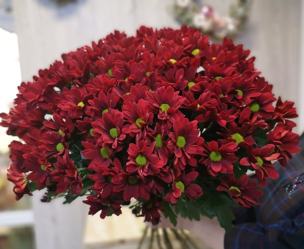- Бакарди Бордо (Bacardi Bordo Chrysanthemum). Яркие цветки насыщенных красных и бордовых оттенков, на фоне которых особенно заметны необычные желто-зеленые сердцевинки. В букетах создают невероятный по красоте эффект с белыми цветами.