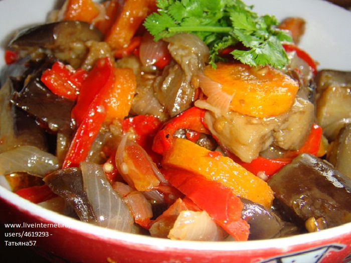 Можно делать соте не только с баклажанами и перцем, но и добавить кусочки моркови, кабачка или другие овощи, ниже можно посмотреть подобные рецепты.