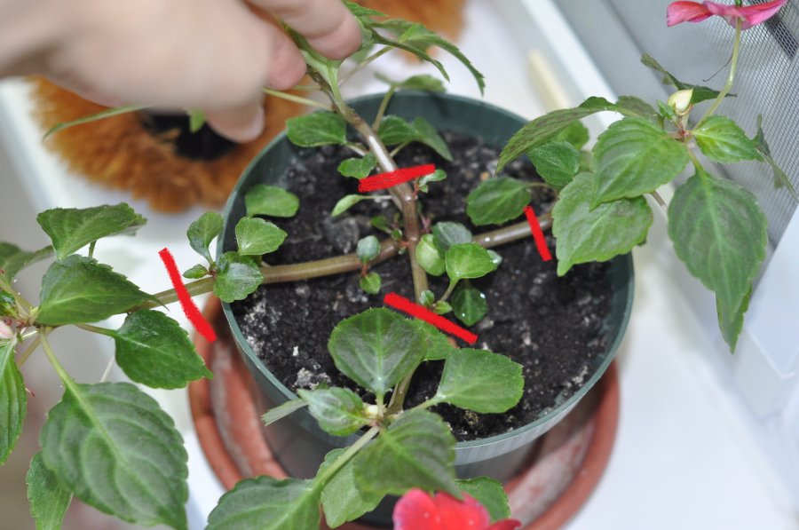 Черенковать бальзамины можно и буквально в течение всего года, сохраняя кусты в качестве маточных на зиму или нарезая черенки осенью и сохраняя укорененные веточки в помещении до весны.