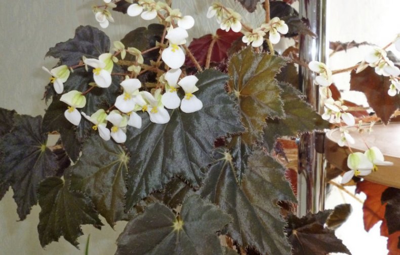 Бегония — один из древнейших домашних цветов. Ее родина Мексика. Толщина стелющегося побега около 4 сантиметров. На зеленовато-желтых черешках располагаются крупные пальчато-рассеченные листовые пластинки. Длина листьев не превышает 35 сантиметров, имеется хорошо заметное жилкование. Розовато-зеленые цветки входят в состав рыхлых соцветий, имеющих форму кисти.Цветение начинается в феврале.
