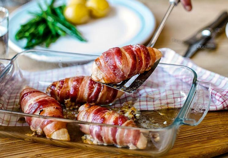 Рецепты блюд с беконом популярны во многих национальных кухнях. Насыщенный вкус бекона превращает обычную яичницу во вкусный и сытный завтрак, а простой горячий тост делает в два раза вкуснее. Ломтиком жаренного до хруста бекона украшают супы-пюре и гаспачо. Бекон отлично подходит для закусок и канапе.