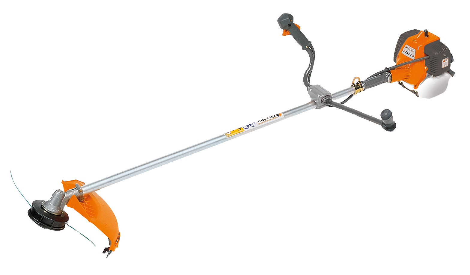 Модель также оборудована ранцевым подвесом, благодаря чему масса изделия равномерно распределяется на оба плеча. Двигатель двухтактный, работает на смеси масла и бензина, к сожалению, производитель не предусмотрел наличие мерного стаканчика для смешивания этих вещей. Мотор отличается высоким качеством изготовления. Штанга обладает телескопическим механизмом, производится из анодированного алюминия. Вал в конструкции стальной, поворачивается на подшипниках, которые способны находиться в рабочем состоянии значительно дольше нежели втулки. При стрижке травы можно использовать леску, максимальная толщина которой составляет 3 мм. Собрать изделие и привести его в рабочее состояние можно самостоятельно без посторонней помощи.