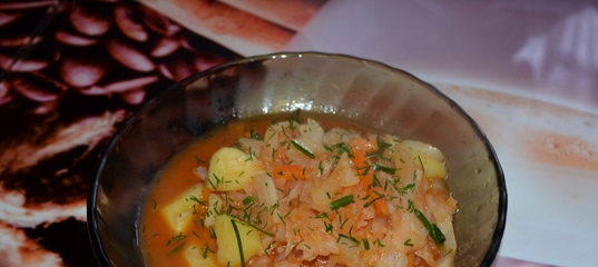 Ингредиенты: капуста 500 г, картофель 500 г, лук репчатый 150 г, морковь 100 г, говядина 300 г, масло сливочное 50 г, масло подсолнечное 50 г, мука пшеничная 15 г, соль, перец.