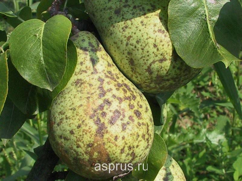 Затем на грушах возникают наросты, в которых содержатся споры. Их разносят вокруг ветер, птицы, насекомые.