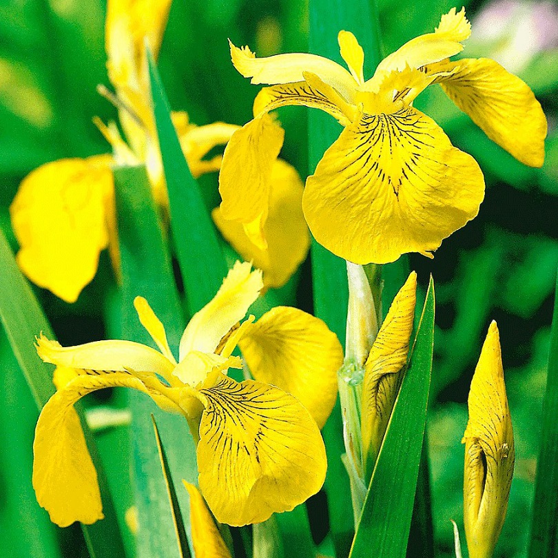 Зацветая, в отличие от бородатого ириса, у которого один-два крупных цветка, болотный ирис выпускает множество побегов, которые возвышаются над листьями, и все его цветы появляются практически одновременно.