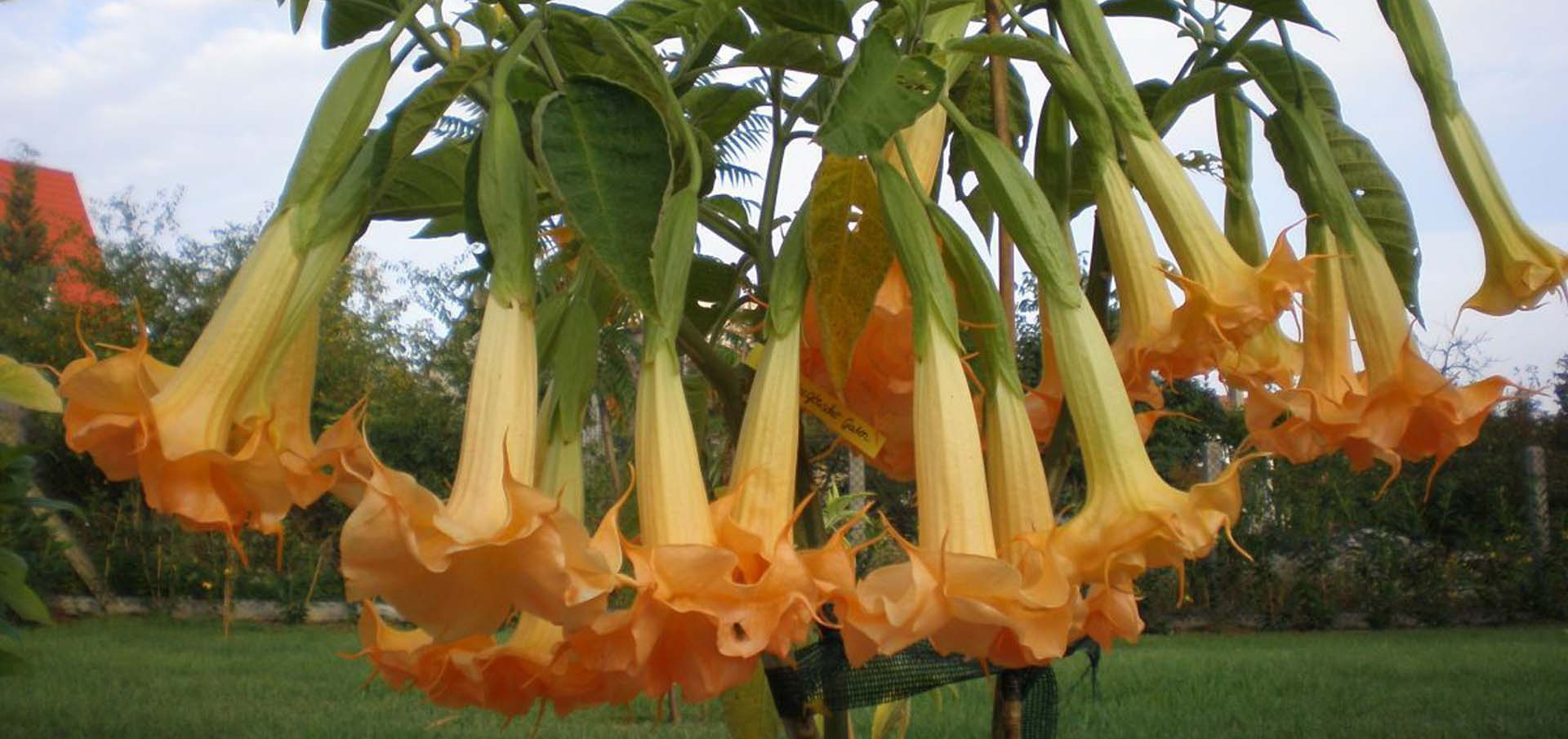 Трубами ангела бругмансию прозвали за интересную форму цветов, напоминающую трубу. Выращивание бругмансии из семян и дальнейший уход за ней задача не из легких. Но потраченные усилия окупятся сторицей невероятно красивым и обильным цветением. Внимательно изучите требования бругмансии к условиям содержания и уходу, прежде чем принимать решение о посадке цветка.