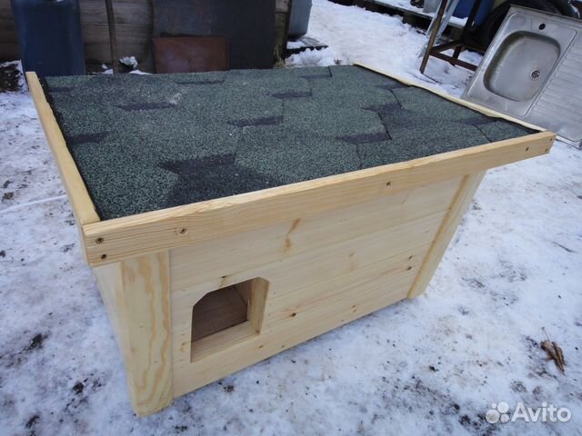 Будка выполнена с лежанкой и навесом, крыша съемная