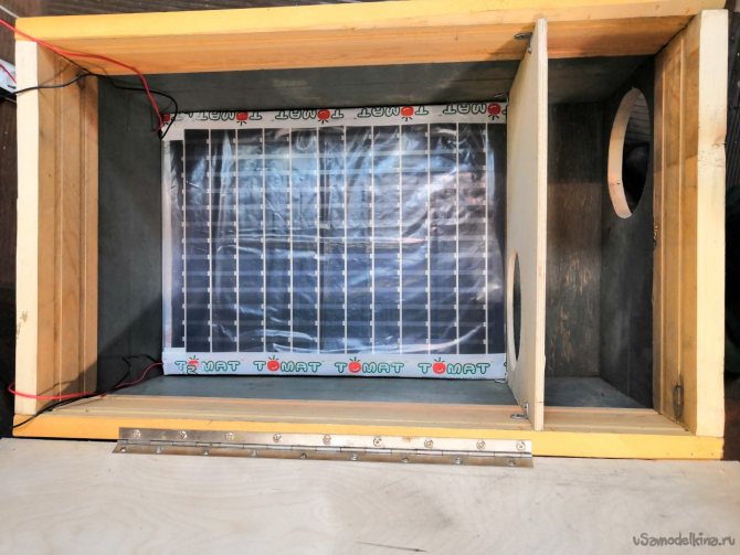 На левой стенке под крышей установлен терморегулятор (от +10 до +45)