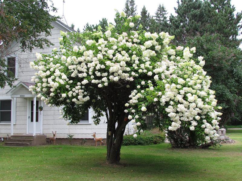 Наиболее привлекателен куст во время цветения — белоснежные шапки соцветий красиво свисают на тонких ветвях.