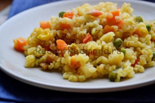 Вариант 3: Булгур на гарнир с консервированной кукурузой и овощами