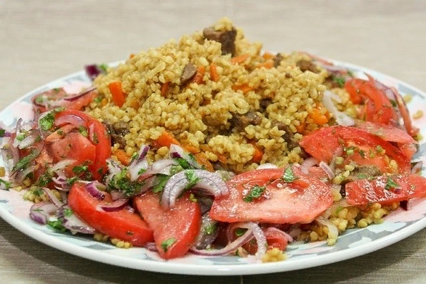 - Чтобы адаптировать рецепт для мультиварки, нужно разогреть масло в режиме «Жарка» или «Выпечка», затем добавить крупу, обжарить ее слегка, затем залить кипятком и готовить с помощью программы «Варка Экспресс» 25 минут или «Каша» 20-25 минут.