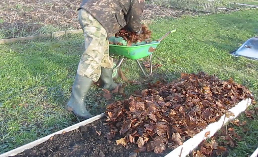 Можно использовать как солому, так и измельченные листья.