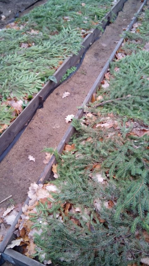 Если у вас рядом есть лес, то десяток еловых лап на одну-две грядки вполне можно и найти, а этого хватит. Главное, чтобы еловый лапник был распределен по всей поверхности грядки и прикрывал листья полностью, а не клочками.