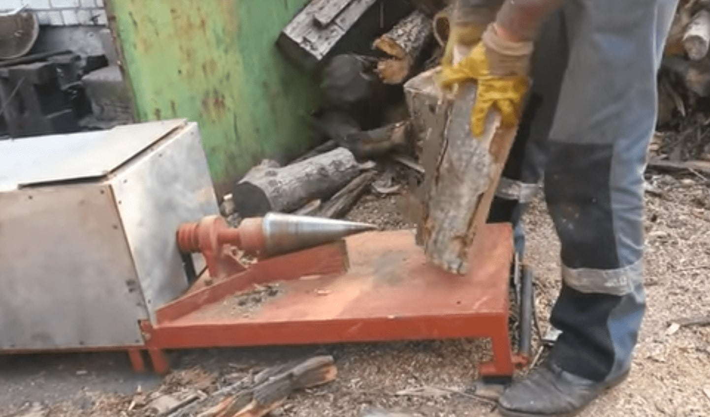 Способ работы этого винтового дровокола очень прост. Во время вращения конус, подобно саморезу, вкручивается в бревно, раскалывая его. Работая с дровоколом, нужно быть предельно аккуратным и соблюдать правила безопасности.