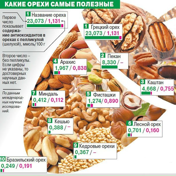 - Антиоксиданты, содержащиеся в орехах, омолаживают организм, а также повышают работоспособность мозга.
