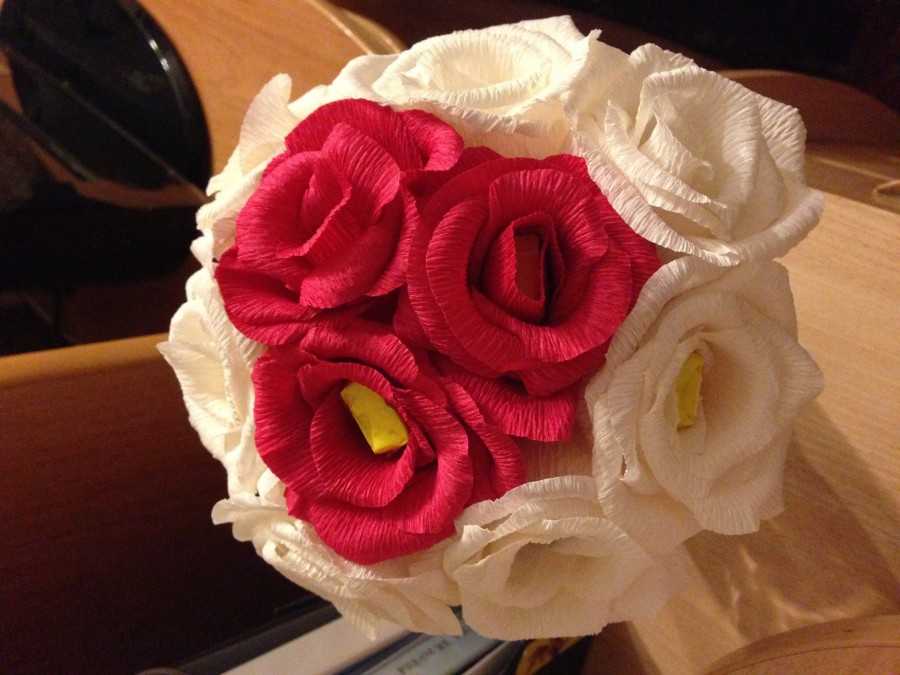- Иметь толстую проволоку, ленту для обматывания, более десяти бутонов сухих роз, круглый шар, на который будут наклеиваться цветы.