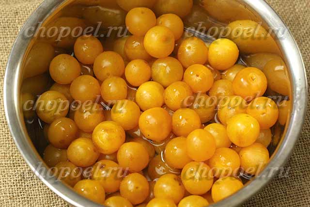 - Плоды желтой сливы надо помыть и просушить. Затем извлечь косточки.