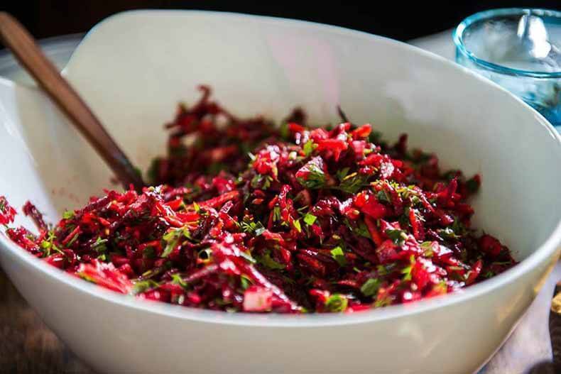 Здесь зелень сочетается с жареной свеклой, каперсами и фетой в греческом салате. Предложите это перед жареной бараньей ногой с хрустящим картофелем.