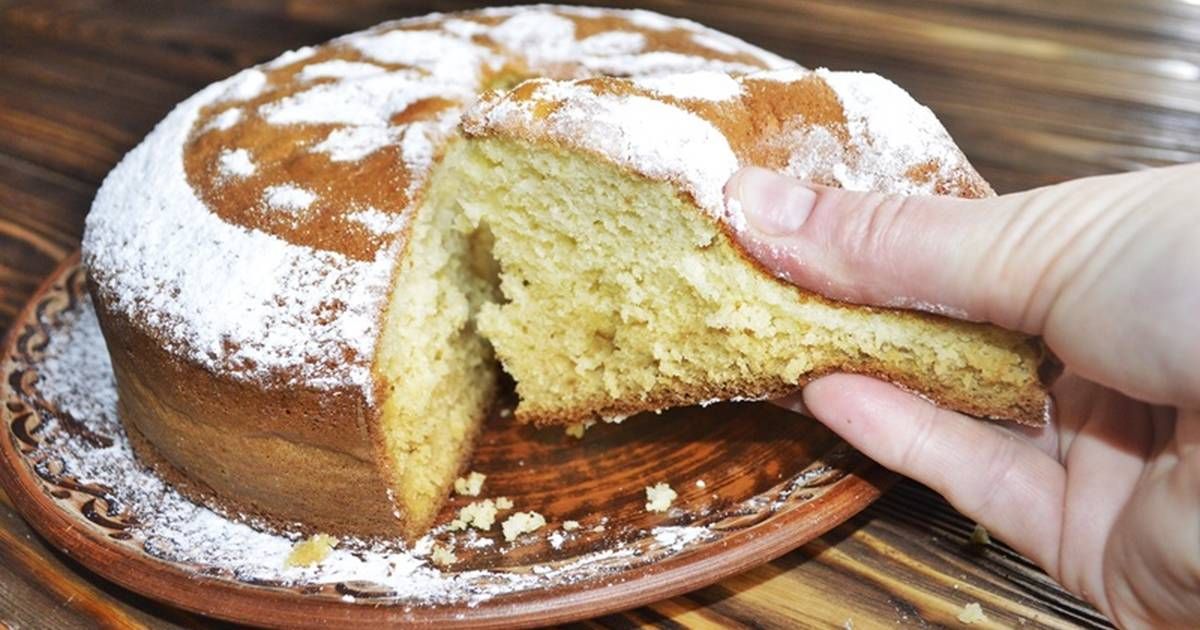 Добавьте соду, всыпьте муку (столько, чтобы получилось тесто средней мягкости). Выпекайте бисквит в духовке при температуре 180ºС до золотистой корочки.