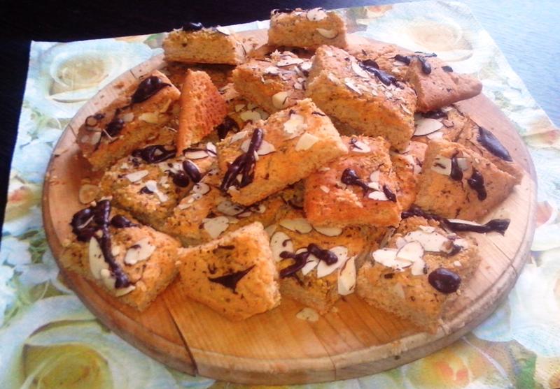 Замесите тесто, раскатайте его на мелкие шарики величиной с лесной орех. Выложите их на смазанный маслом противень плотно один к другому и выпекайте 20 минут при температуре 200-220ºС. При выпечке шарики расплывутся и образуют сплошной пласт, напоминающий мостовую. Готовую коврижку остудите и покройте с помощью кисточки сахарным сиропом. Когда сироп застынет, разрежьте пласт на порционные кусочки.