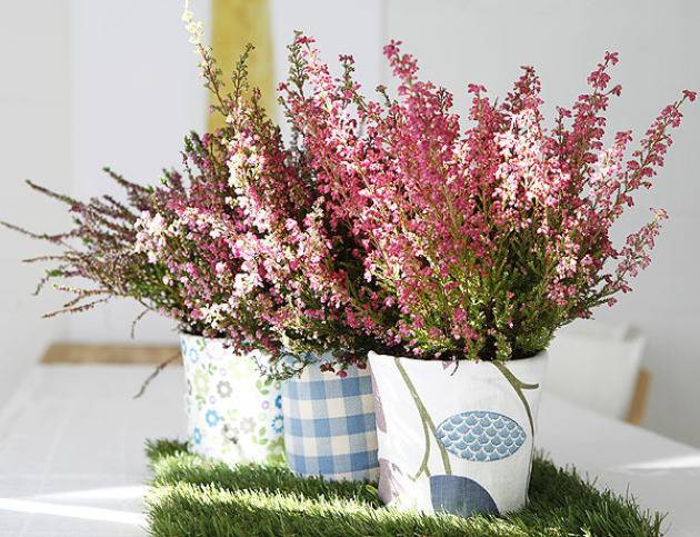 Оно хорошо смотрится рядом с цикламеном и хризантемами, а в качестве украшения горшка с эрикой можно использовать специальные камни, или декоративные корни.