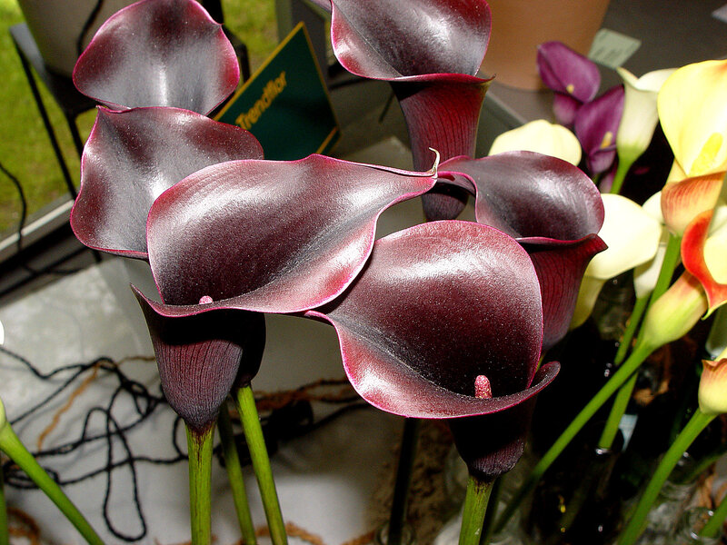 Названных сортов много, и с каждым годом они развиваются все больше.Они доступны в виде срезанных цветов круглый год и часто используются в качестве свадебных цветов. Цвета варьируются от нежных пастельных тонов через огненно-красные и апельсиновые до пурпурных и красных, настолько глубоких, что они приближаются к черному. «Черная магия» имеет светло-желтые цветы с темно-пурпурным пятном в глубине горловины покрова. «Blaze» отличается оранжевыми пятнами с более глубокими краями и листьями с белыми пятнами. Красные полосы украшают желто-оранжевые пятна «Пламени». «Majestic Red» имеет розово-красные пятна, а «Millennium Gold» — темно-желтый, с листьями с белыми пятнами на обоих.«Red Alert» имеет ярко-красный покров и лопатку, «Captain Prado» — королевский фиолетовый, а «Black Star» — темно-черное дерево.