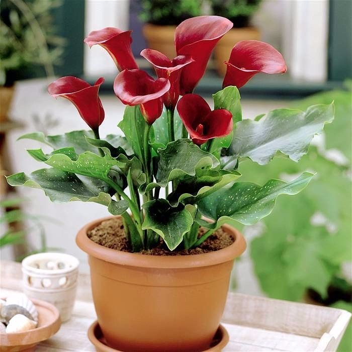 Каллы можно выращивать в контейнерах на открытом воздухе тем же способом, что и на клумбах. Это хороший вариант для тех, у кого есть только небольшой двор, а не огород. Вы также можете выращивать каллы из луковиц в комнатных горшках перед посадкой на открытом воздухе. Это даст вам фору и означает, что вам не придется ждать, пока не исчезнет изморозь.