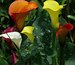 Классика жанра – белые Каллы. Не многие знают, что они представлены в широком цветовом спектре, встречаются разновидности розовые, бордовые, желтые, оранжевые и насыщенно красные.