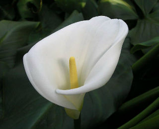 Белая калла высотой от 2 до 3 футов имеет большие цветки, достигающие 10 дюймов в длину.Настоящие цветы принадлежат к семейству арумовых, они расположены на центральной желтой структуре в форме стержня, называемой початком. Это эквивалент «Джека» в «Джек за кафедрой», также в семье арум. Красочная часть, окружающая початок, — это покрывало. Белая калла имеет блестящие вертикальные темно-зеленые листья и растет в зонах устойчивости растений Министерства сельского хозяйства США с 8 по 10. Цветет весной и летом. Растения происходят из мясистого корневища. Разновидности включают «Гигантский белый», «Зеленая богиня» с зеленым покровом, «Чайлдсиана», карликовая форма с белыми цветками, «Дива Мария» с розовым на внешней стороне покрытия и «Маршмеллоу» с кремово-розовым покровом и розово-розовое горло.