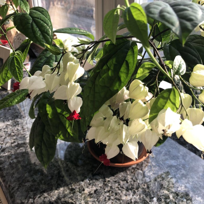 Clerodendrum thomsoniae Обильно цветет весной и летом.Если он мало цветет, переместите его туда, где он будет получать непрямой свет из окна, выходящего на юг или запад.