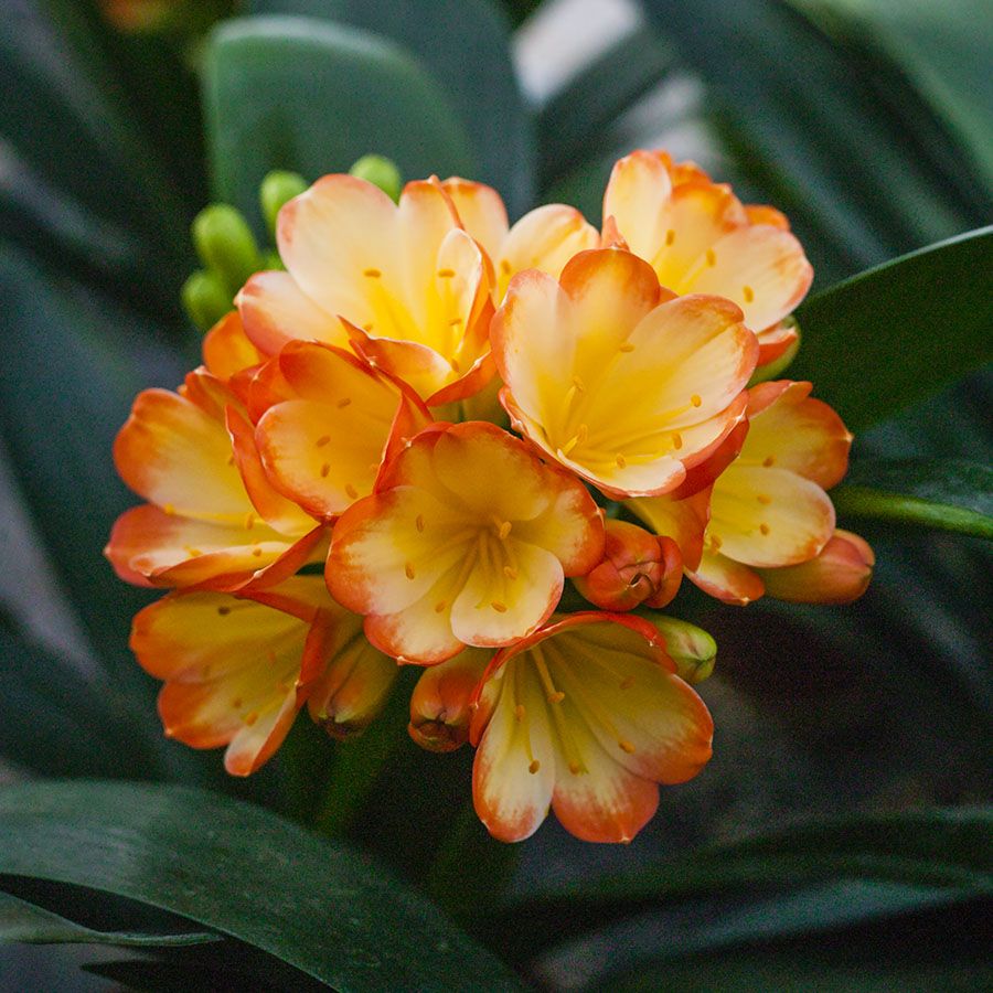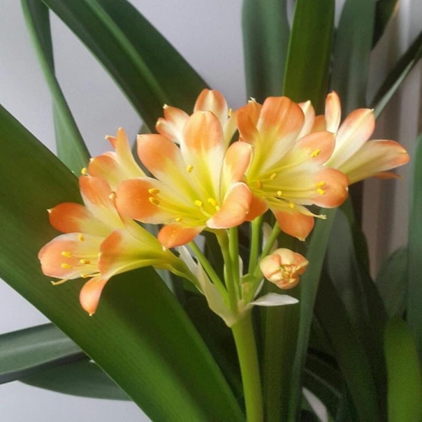 Цветение: Кливия цветет в феврале, марте или апреле или после 4–5 недель пребывания в прохладных и сухих условиях.